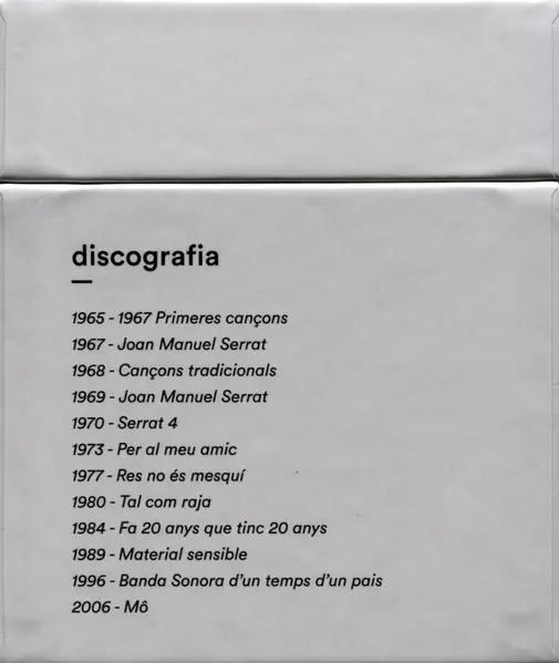 Joan Manuel Serrat: Discografia versión en 13CD/Caja en estándar edición. Esta edición en concreto se lanzó en España en la editorial Sony Music el día 20. diciembre 2019. Álbum abarca todos los géneros Folk, World, & Country y Catalan Music.