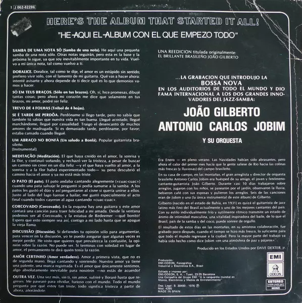 | Título | Gilberto & Jobim - Here's The Album That Started All = He Aqui El Album Que Empezo Todo |