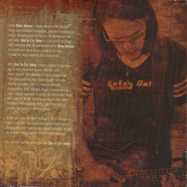 Had To Cry Today is an album by Joe Bonamassa , released in 2004. The album was produced by Kevin Shirley and features Bonamassa on guitar and vocals along with a backing band featuring Shirley on keyboards. The album was recorded at The Plant Studios in Sausalito, California. The album was nominated for a Grammy Award for Best Rock Instrumental...