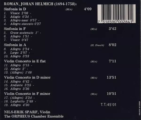 Artista | Johan Helmich Roman | Nils-Erik Sparf | The Orpheus Chamber Ensemble |