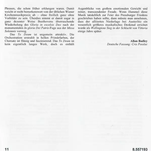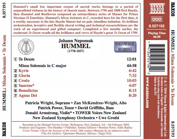| Artista | Johann Nepomuk Hummel | Uwe Grodd | New Zealand Symphony Orchestra | Voices New Zealand | Patricia Wright | Zan Wright | Patrick Power | David Griffiths |