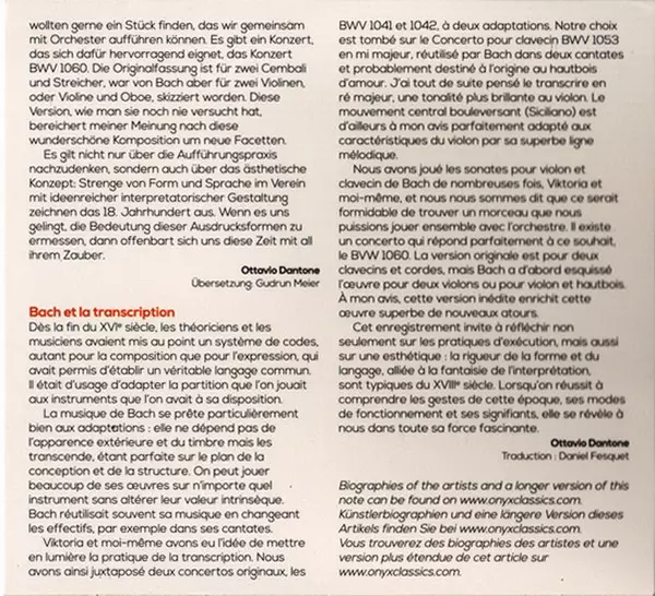 | Artista | Johann Sebastian Bach | Viktoria Mullova | Ottavio Dantone | Accademia Bizantina |
