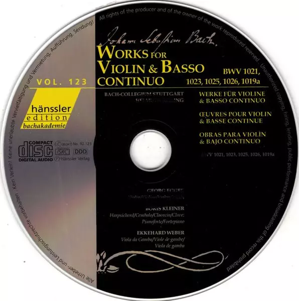 | Título | Works For Violin & Basso Continuo BWV 1021, 1023, 1025, 1026, 1019a |