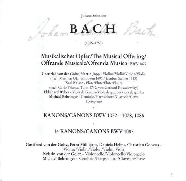 | Título | Musical Offering BWV 1079 / Canons BWV 1072 - 1078, 1086, 1087 |