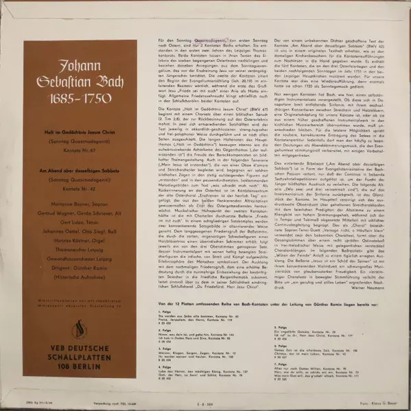 Halt Im Gedächtnis Jesum Christ, Kantate Nr. 67 / Am Abend Aber Desselbigen Sabbats, Kantate Nr. 42 - LP