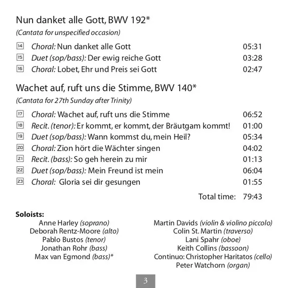 | Título | Cantatas BWV 62, 45, 192, 140 |
