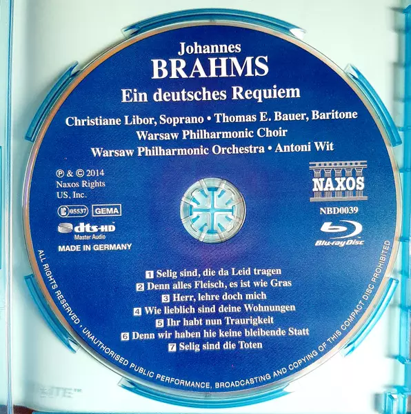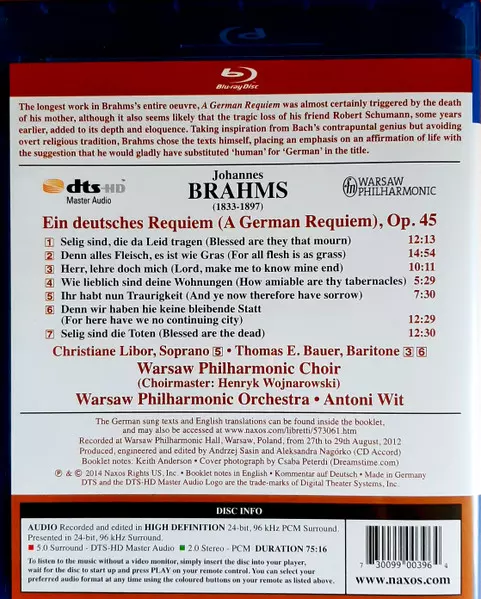 | Artista | Johannes Brahms | Orkiestra Symfoniczna Filharmonii Narodowej | Antoni Wit | Chór Filharmonii Narodowej | Thomas E. Bauer | Christiane Libor |