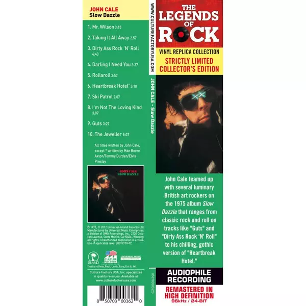 John Cale "Slow Dazzle" is an experimental album released in 1975. The album is a mixture of rock, jazz and classical music. Cale is a classically trained musician and on this album he uses his skills to create a unique sound. The songs are all very different from each other and have no clear theme or storyline. This makes it difficult to listen...