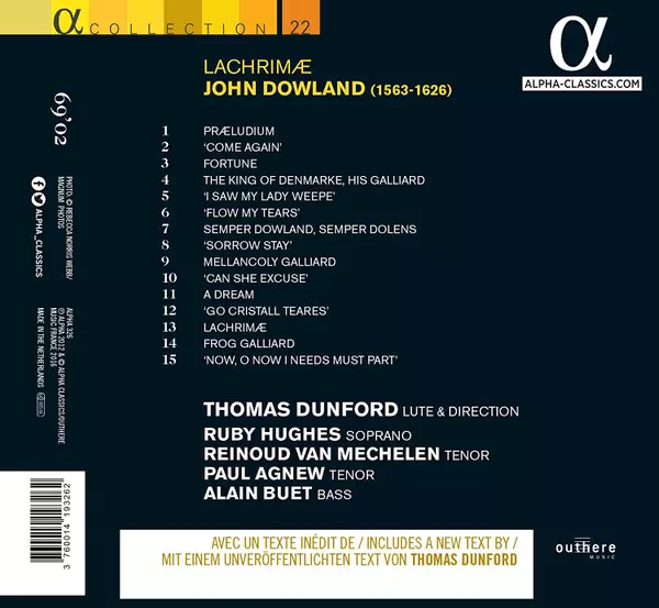 | Artista | John Dowland | Reinoud Van Mechelen | Thomas Dunford | Paul Agnew | Ruby Hughes | Alain Buet |