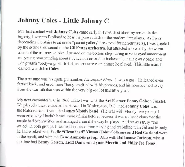 | Artista | Johnny Coles |