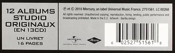 Johnny Hallyday: L'essentiel Des Albums Studio Vol. II (1981 - 2005) versión en 13CD/Caja en estándar edición. Esta edición en concreto se lanzó en Europa en la editorial Mercury en colaboración con Universal Music France el día 14. junio 2024. Álbum abarca todos los géneros Rock, Pop, Rock & Roll y Chanson.