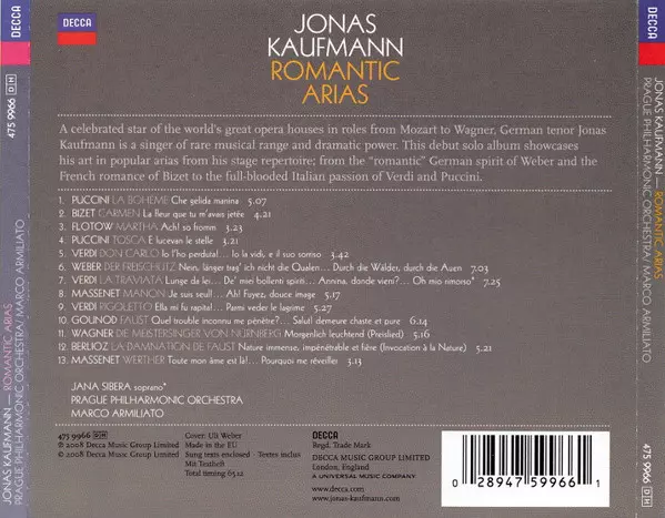 | Artista | Jonas Kaufmann | Marco Armiliato | Prague Philharmonic Orchestra |