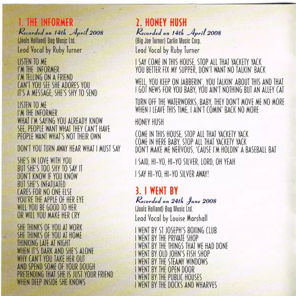 Jools Holland And His Rhythm & Blues Orchestra: The Informer versión en 2CD en estándar edición. Esta edición en concreto se lanzó en Reino Unido en la editorial Rhino Records (2) el día 6. agosto 2013. Álbum abarca todos los géneros Blues y Rhythm & Blues.