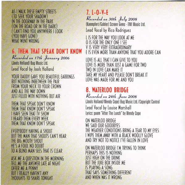 Lead Vocals Louise Clare Marshall | Written-By Jools Holland, Wendy Cope