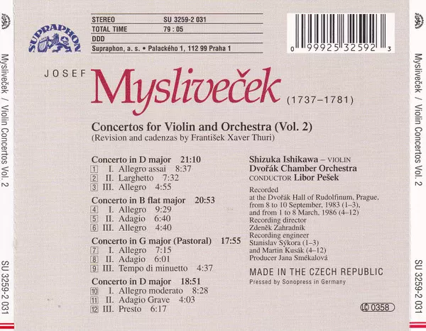 | Artista | Libor Pešek | Josef Mysliveček | Shizuka Ishikawa | Dvořák Chamber Orchestra |