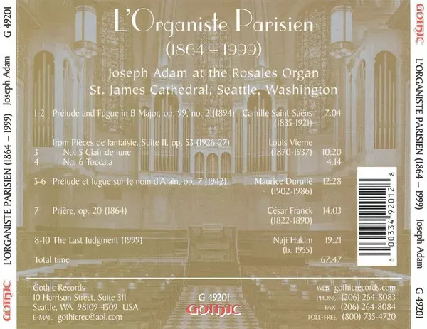 | Título | L' Organiste Parisien, 1864-1999 |