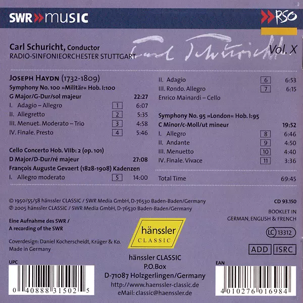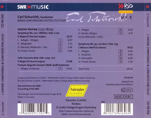 | Artista | Joseph Haydn | Radio-Sinfonieorchester Stuttgart | Carl Schuricht |
