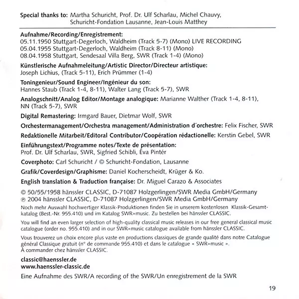 | Editorial | Hänssler Classic | SWR Music |