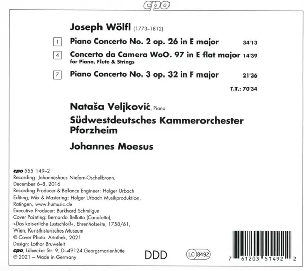 | Artista | Südwestdeutsches Kammerorchester | Johannes Moesus | Joseph Wölfl | Nataša Veljković |