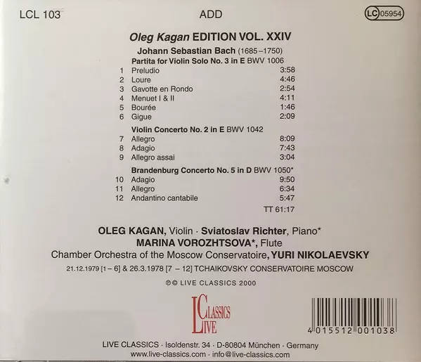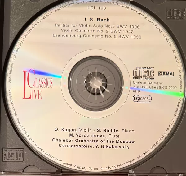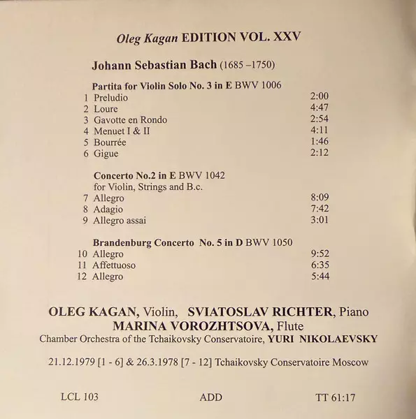 | Título | Partita For Solo Violin No. 3 In E BWV 1006 / Violin Concerto No. 2 In E BWV 1042 / Brandenburg Concerto No. 5 In D BWV 1050 |
