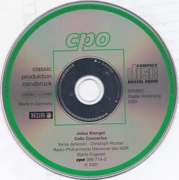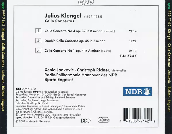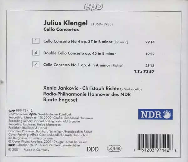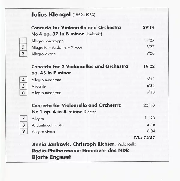| Artista | Bjarte Engeset | Radio-Philharmonie Hannover Des NDR | Julius Klengel | Christoph Richter | Xenia Jankovic |