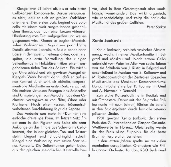 | Cello Christoph Richter (2), Xenia Jankovic | ||