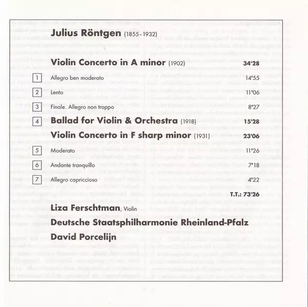 | Artista | Staatsphilharmonie Rheinland-Pfalz | Julius Röntgen | Liza Ferschtman | David Porcelijn |