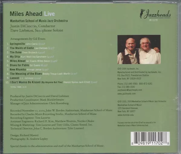 | Artista | David Liebman | Justin DiCoccio | Manhattan School Of Music Jazz Orchestra |
