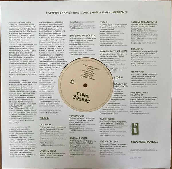 Acoustic Guitar, Bass, Drums, Synthesizer Ian Fitchuk | Acoustic Guitar, Classical Guitar Todd Lombardo | Piano, Mellotron, Synthesizer, Electric Guitar Daniel Tashian | Violin, Viola, Cello Matt Combs (2) | Vocals Kacey Musgraves | Written-By Daniel Tashian, Ian Fitchuk, Kacey Musgraves | Written-By ["Kody Blu 31" Interpolations] DJ Barnett, Destin Route, Ian Welch (6), Jerramy Barnett, John Welch (10), Justin Barnett (3), Margaux Whitney, Nicolas Barnett, Taji Jones