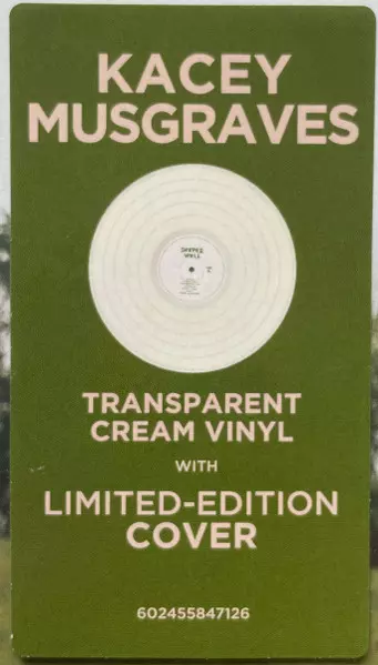 Kacey Musgraves: Deeper Well CLR | LTD versión en vinilo LP en en color de edición limitada edición. Esta edición en concreto se lanzó en Mundo entero en la editorial Interscope Records en colaboración con MCA Nashville el día 22. marzo 2024. Álbum abarca todos los géneros Indie Folk, Americana, Folk Pop, Country Pop y Singer-Songwriter. Coloured Cream Transparent Alternate Cover Vinyl Limited Edition.