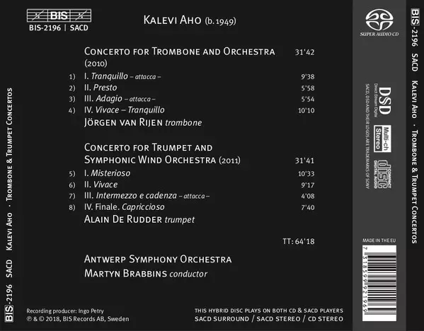 | Artista | Martyn Brabbins | Kalevi Aho | Antwerp Symphony Orchestra | Jörgen van Rijen | Alain de Rudder |