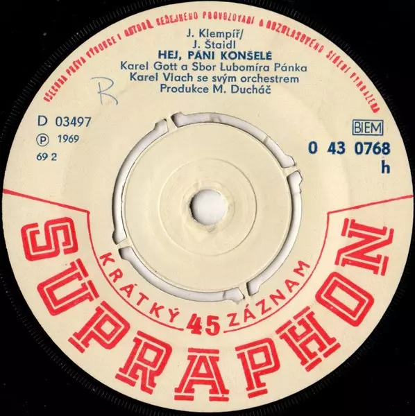 Chorus Master Lubomír Pánek | Lyrics By Jiří Štaidl | Music By Jaromír Klempíř | Vocals [Zp.] Karel Gott | Vocals [Zp.], Chorus [Sbor] Lubomír Pánek Singers | |||