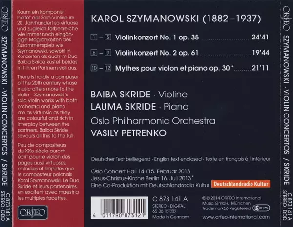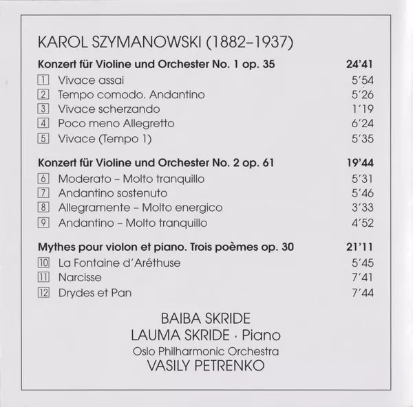 | Artista | Karol Szymanowski | Vasily Petrenko | Baiba Skride | Lauma Skride |