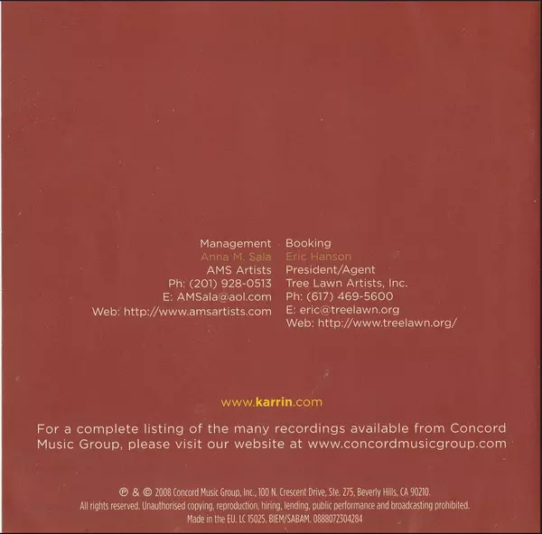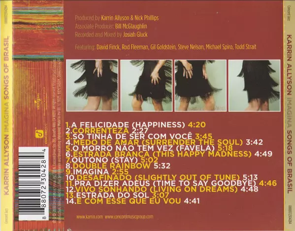 Karrin Allyson: Imagina: Songs Of Brasil versión en CD en estándar edición. Esta edición en concreto se lanzó en Europa en la editorial Concord Jazz el día 25. marzo 2008. Álbum abarca todos los géneros Jazz, Latin Jazz y Bossa Nova.