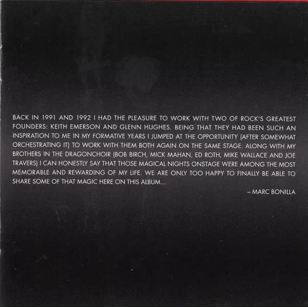 | Artista | Glenn Hughes | Keith Emerson | Marc Bonilla |