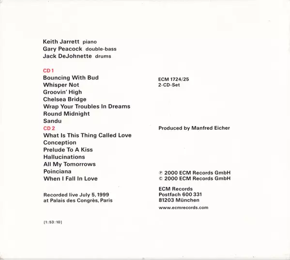 | Artista | Keith Jarrett | Jack DeJohnette | Gary Peacock |