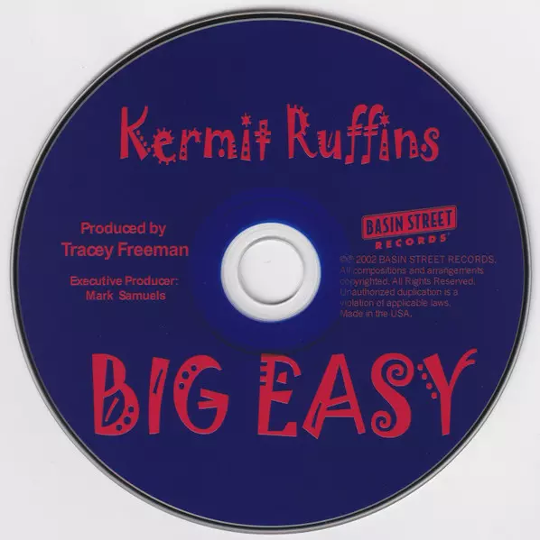 Kermit Ruffins: Big Easy versión en CD en estándar edición. Esta edición en concreto se lanzó en EE.UU. en la editorial Basin Street Records el día 24. septiembre 2002. Álbum abarca todos los géneros Jazz y Contemporary Jazz.