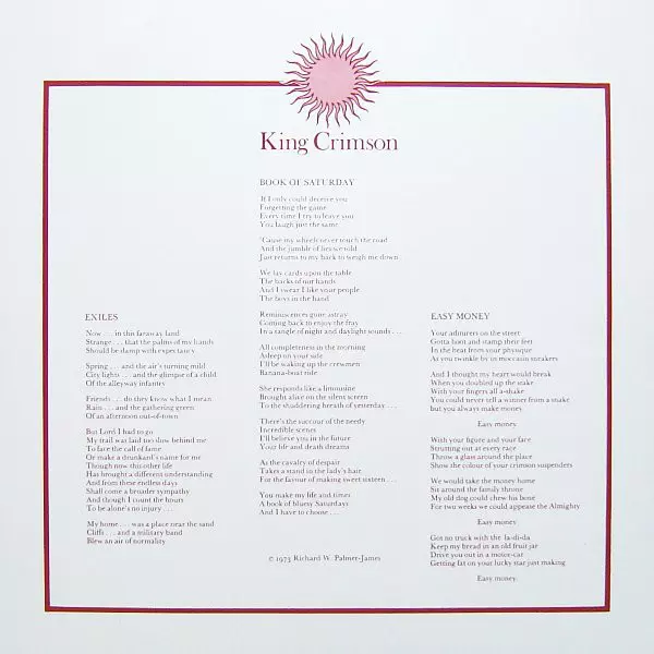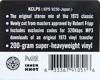 Díky syrovému tónu, inspirativním improvizacím a tvrdým, zvláštním rytmům znamenalo toto album radikální zlom pro tuto pokrokovou skupinu a bylo prvním, na kterém se jako členové kapely podíleli Bill Bruford a John Wetton. Tato reedice super těžkého 200g vinylu, schválená Robertem Frippem, je uložena v reprintu původního obalu....