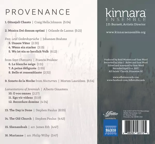 | Artista | Johannes Brahms | Alberto Ginastera | Francis Poulenc | Roland de Lassus | Craig Hella Johnson | Stephen Paulus | Philip Wilby | Kinnara Ensemble | J.D. Burnett | Morton Lauridsen | James Erb |