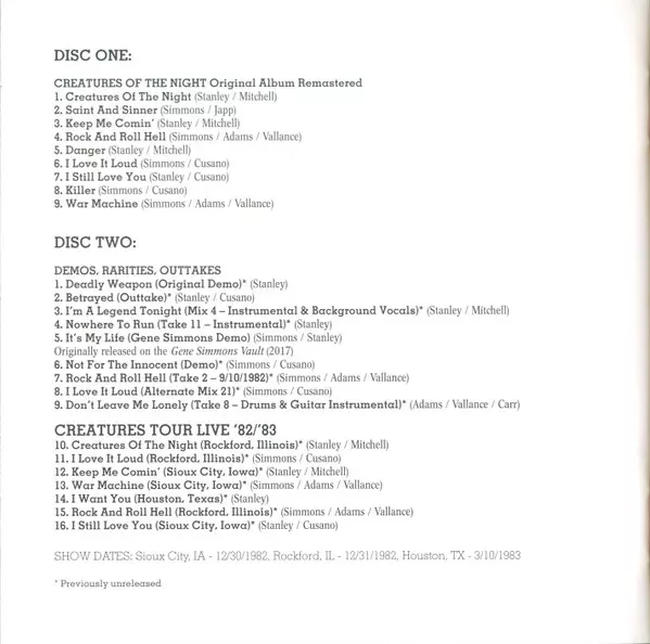 | Título | Creatures Of The Night 40th Anniversary Remaster DLX | LTD | DIGI |