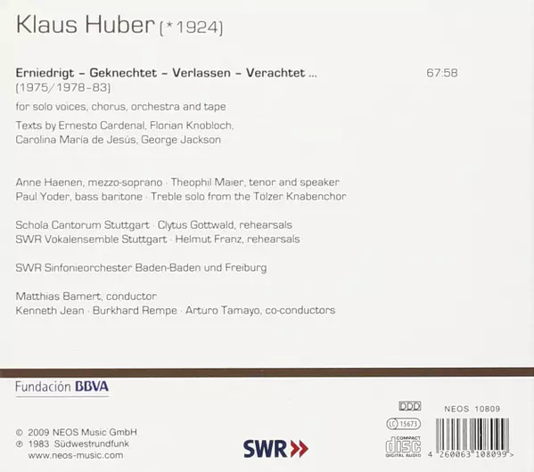 | Erniedrigt – Geknechtet – Verlassen – Verachtet ... - For Solo Voices, Chorus, Orchestra And Tape (1975/1978–83) | 67:58 min |
