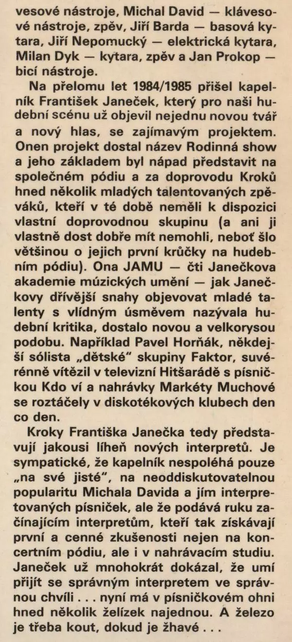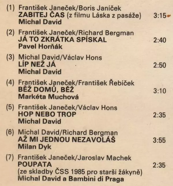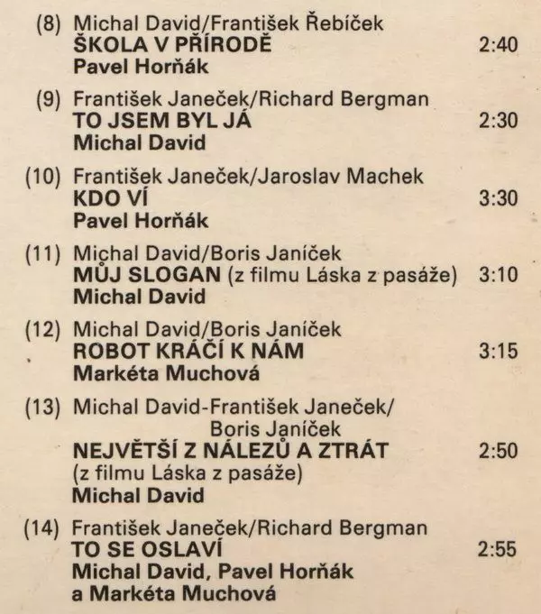 Artista | Michal David | Kroky | Pavel Horňák | Markéta Muchová | Milan Dyk |
