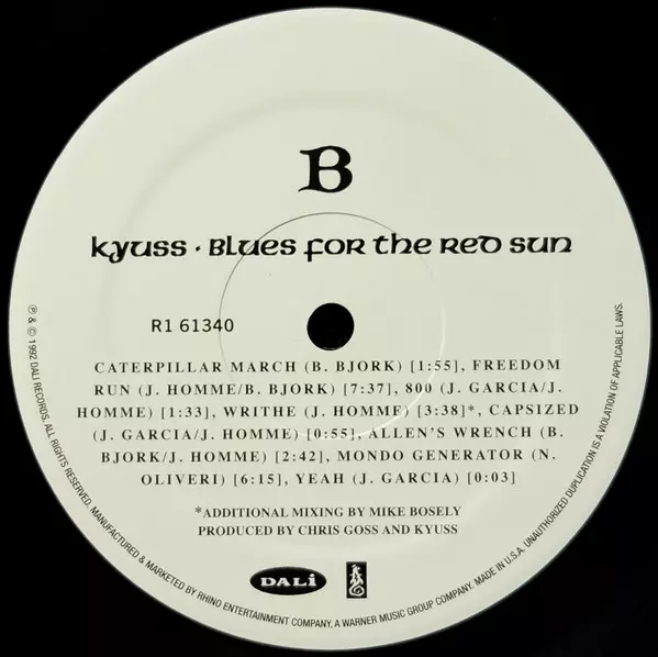 "Blues for the Red Sun" is the second studio album by the American rock band Kyuss from Palm Desert, released in 1992. Although the album received mostly positive reviews, it sold relatively poorly commercially - only 39,000 units. It has since become a highly influential album within the stoner rock genre.