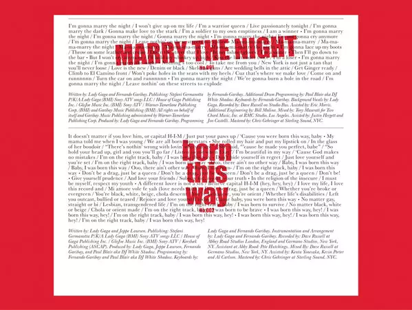 In 2011, her third studio album Born This Way ( Lady Gaga ) was released. The album was a commercial success, topping charts in countries around the world and earning a platinum record from the Recording Industry Association of America. The lead single from the album, "Born This Way", became an international hit and topped the charts in over 20 countries. The album's second single, "Judas", was also successful, reaching the top ten in several countries. The third single from the album, "The Edge of Glory", reached the top five of the charts in several countries. The fourth single from the album, "Yoü and I", reached the top ten of the charts in several countries. The album's fifth and final single, "Marry the Night", reached the top twenty of the charts in several countries. The album was produced by a number of producers, including Gaga herself, RedOne, Fernando Garibay, DJ White Shadow and Lady Starlight. The sound of the album has been described as synthpop and dance-pop. Critics gave the album mixed reviews, with some praising Gaga's vocals and songwriting, while others criticized the production and lyrics. However, the album was commercially successful and went platinum.