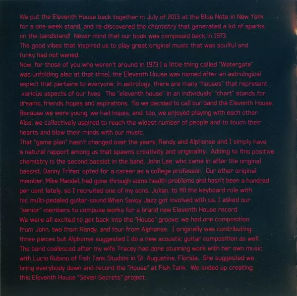 The Eleventh House was a pioneering jazz fusion band of the 1970s led by guitarist Larry Coryell. The group was one of the early proponents of the jazz-rock fusion movement, blending elements of jazz improvisation with rock rhythms and electric instrumentation. The band's lineup fe...