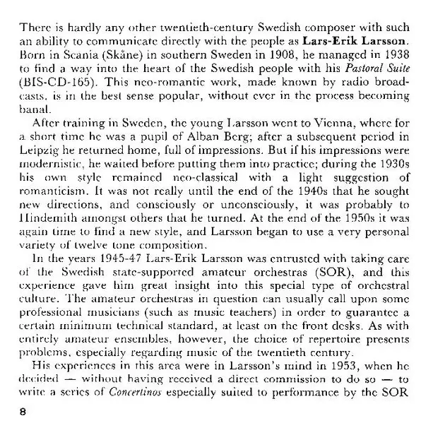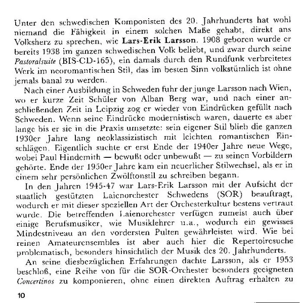 Lars-Erik Larsson was a Swedish composer born on May 15, 1908, in Åkarp. He is considered one of the major Swedish composers of the 20th century, contributing significantly to the national repertoire. Larsson studied at the Stockholm Conservatory and later with Alban Berg in Vienna...