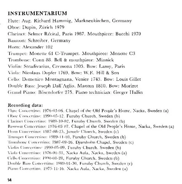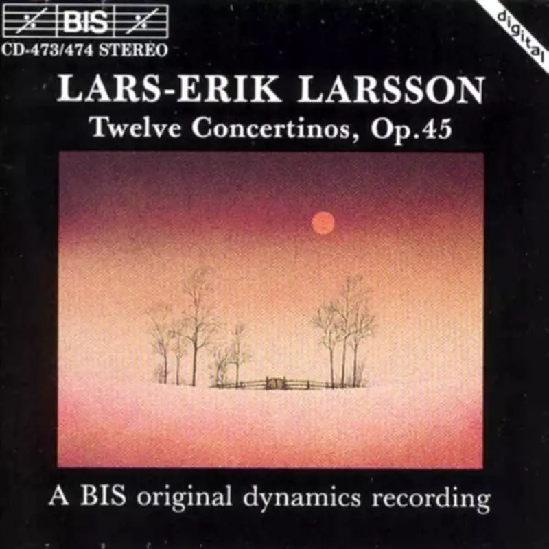 Lars-Erik Larsson: Twelve Concertinos, Op.45 versión en 2CD en estándar edición. Esta edición en concreto se lanzó en Escandinavia en la editorial BIS el día 21. febrero 2003. Álbum abarca todos los géneros Música clásica y Neo-Classical.