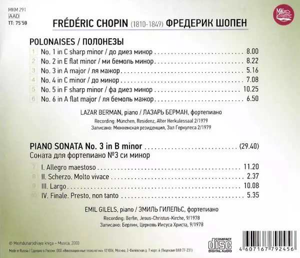 | Artista | Frédéric Chopin | Emil Gilels | Lazar Berman |