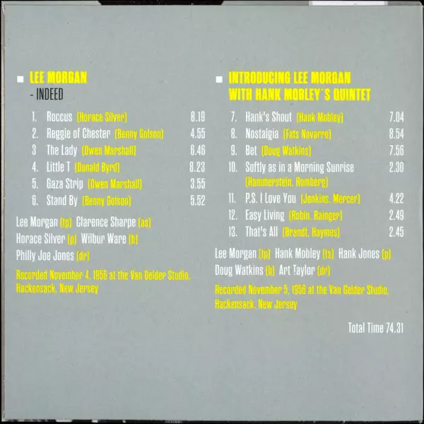 | CD 1: Lee Morgan - Indeed / Introducing Lee Morgan with Hank Mobley's Quintet | |||