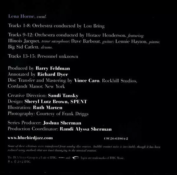 Lena Horne: The Young Star versión en CD en remasterizado edición. Esta edición en concreto se lanzó en Europa en la editorial BMG en colaboración con Bluebird (3) y RCA Victor Group el día 25. enero 2011. Álbum abarca todos los géneros Jazz y Vocal.